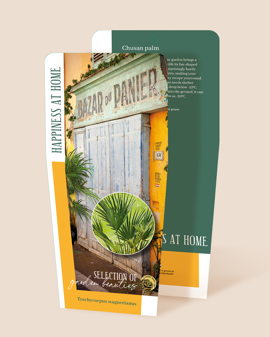 Voor deze nieuwe lijn ontwikkelden wij een stijlvol plantenetiket dat de warme, Zuid-Europese uitstraling van de planten versterkt. Het etiket wordt direct op de pot verlijmd, in plaats van bevestigd met het gebruikelijke kliksysteem. Zo ontstaat een strakke, hoogwaardige presentatie.